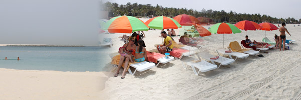 Am ersten Tag ging es mit dem Taxi an den Jumeirah Beach Park; endlich Sonne, Strand und perfekt warmes Wasser. Der Beach Park bietet den Vorteil, dass man alles notwendige wie Strandliege, Sonnenschirm und Badetücher preiswert ausleihen kann, so dass man absolut wenig Gepäck am Strand braucht; auch für das leibliche Wohl ist Dank Strandrestaurant gesorgt. Abends haben wir direkt am Dubai Creek im Restaurant Boardwalk am Golfclub zu Abend gegessen und den herrlichen Blick über den Creek genossen.